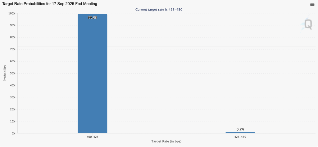 Markets now see a 99.3% chance of a Fed rate cut, as weak jobs and high productivity lower inflation risks, which give the Fed room to ease monetary policy. In a very simple meaning, the cracks are forming.Β