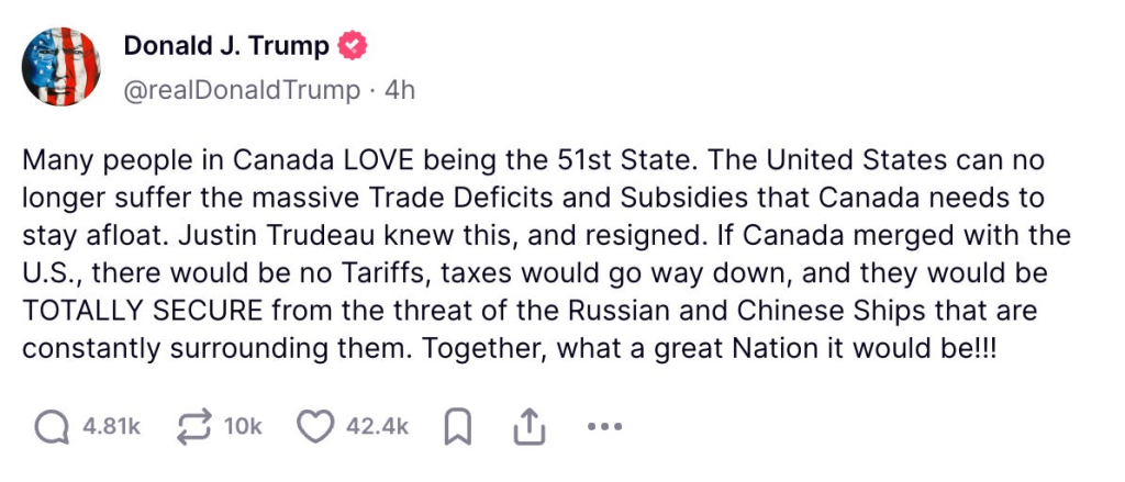 យោងតាមរបាយការណ៍របស់ Bloomberg ប្រមុខដឹកនាំកោះ Greenland កាលពីថ្ងៃអង្គារ បានព្រមានប្រជាជនរបស់ខ្លួនឱ្យត្រៀមលក្ខណៈសម្រាប់ការឈ្លានពានពីសំណាក់សហរដ្ឋអាមេរិក។ បន្ទាប់ពីមានសេចក្តីរាយការណ៍ថា សហរដ្ធអាមេរិកបានទទួលស្គាល់ថាខ្លួនចង់ដាក់បញ្ចូលកោះដ៏ធំនេះជាផ្នែកមួយនៃទឹកដីអាមេរិក ដោយផ្នែកខ្លះគឺដោយសារហេតុផល “ចិត្តសាស្រ្ត” (ខណៈដែលសន្ធិសញ្ញាឆ្នាំ ១៩៥១បានផ្តល់សិទ្ធិឱ្យសហរដ្ឋអាមេរិកធ្វើសកម្មភាពយោធាដោយសេរីនៅទីនោះរួចទៅហើយ) ប្រធានាធិបតីអាមេរិកវ័យ ៧៩ ឆ្នាំរូបនេះ បានបន្តដុតបញ្ឆេះកំហឹងបន្ថែមទៀត តាមរយៈការបង្ហោះសារនៅលើបណ្តាញសង្គមនាពេលពាក់កណ្តាលអធ្រាត្រ ដែលក្នុងនោះបានបង្ហាញពីបំណងចង់ដាក់បញ្ចូលប្រទេសកាណាដា ជាផ្នែកមួយនៃទឹកដីអាមេរិកផងដែរ។