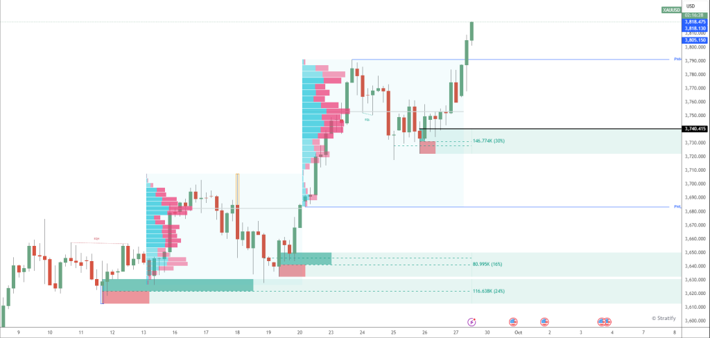 - Weekly Volume Profile: POC keeps making new highs, telling us that gold will continue to go up.Β
