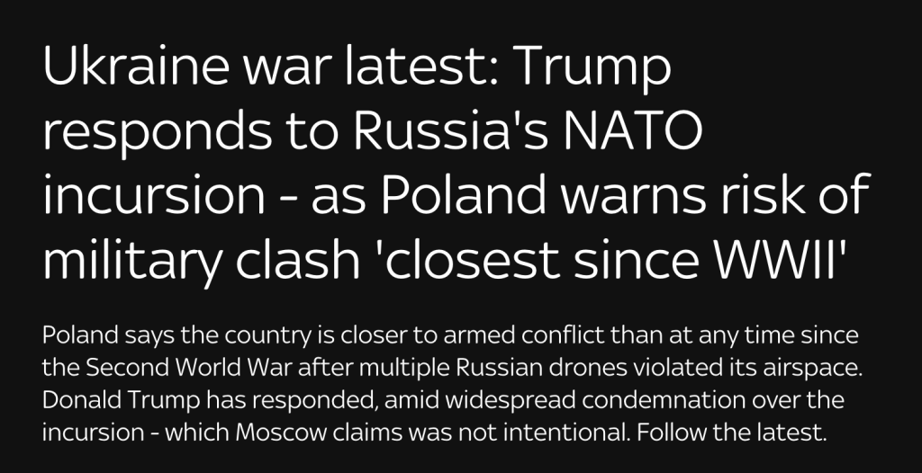 And for Russia and Ukraine, updated, Russia continues to violate Poland’s airspace, and Poland has shot down 4 out of at least 19 Russian drones. In fact, as the intrusion continues, Poland has received plenty of support for the air defense from the EU allies as well. And for Trump, he now acknowledges the invasion that Russia had on Poland, while many were expecting to see more escalation and response from Trump.