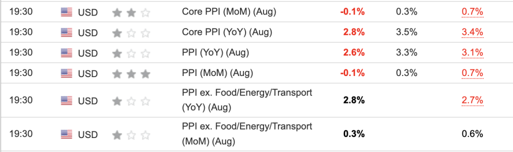 Despite having a softer print in the producer price index, which is known for the wholesale inflation last night, the gold price did not seem to move much. This could be seen as the act that the investor really awaits for tonight’s big inflation headline—consumer price index, as this will signal the Federal Reserve’s motive for the next meeting. The September rate cut is already priced in, but for the October and December? That’s the real question. As per Goldman Sachs CEO David Solomon, “I would expect a 25 bps cut, and I think you could see one or two other cuts.” This could be due to the recent tariff concerns.