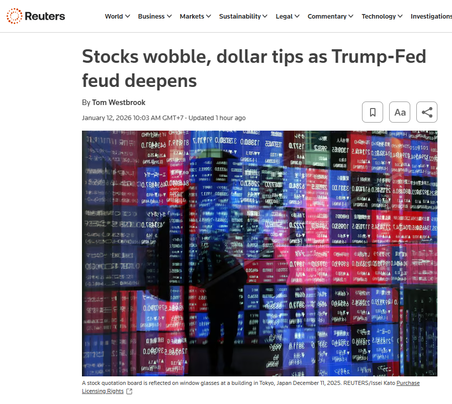 According to Bloomberg on January 12, 2026 at 7:30 AM GMT+ 7, the US Department of Justice (DOJ) has served grand jury Subpoenas to the Federal Reserve, centering on Fed Chair Jerome Powell’s June 2025 congressional testimony about the renovation of the Fed’s headquarters. The Subpoenas threaten a criminal indictment related to the testimony. Powell Said “ The threat of criminal charges is a consequence of the Federal Reserve setting interest rates based on our best assessment of what will serve the public, rather than following the preferences of the president,” he also added “ This is about whether the Fed will be able to continue to set interest rates based on evidence and economic conditions or whether instead monetary policy will be directed by political pressure or intimidation.”