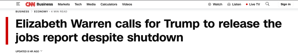 Besides, Elizabeth Warren, a democratic senator, warned Trump to release the Job reports this Friday, as delaying this data would lead the FED to have less time reviewing the data on time before making the interest rate on October 30, 2025.